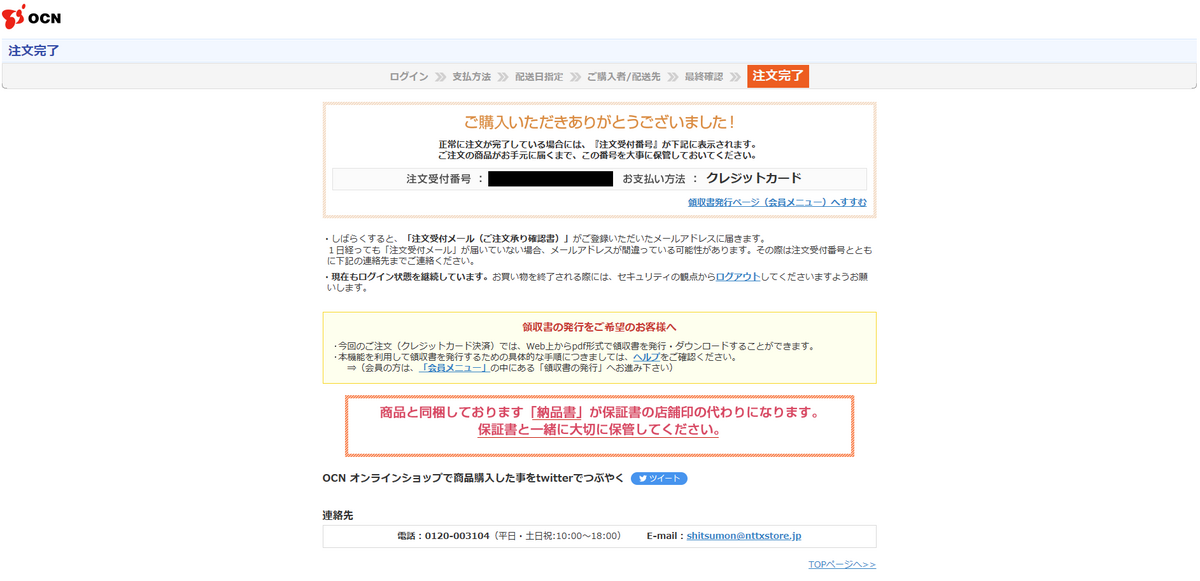 最近初めてOCN オンラインショップ(旧NTT-X Store)を利用したのですが、購入手続きが途中で失敗して困ったのでメモです。
